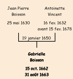 Père : Pierre Boisson, fils de Colomban | Parrain : Gaspard Vincent (fils de Claude égèrge) |
