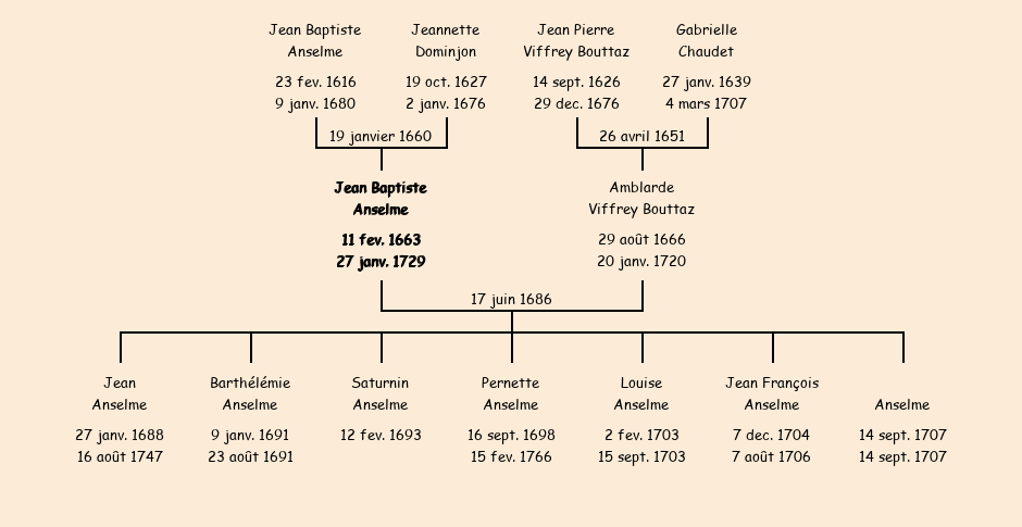 | Jean Baptiste Anselme apparait dans la consigne des mâles de 1713. |