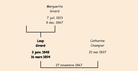 | Marié (19 ans) avec Catherine Champier (30 ans) le 27 novembre 1867 à Saint-Pancrace |