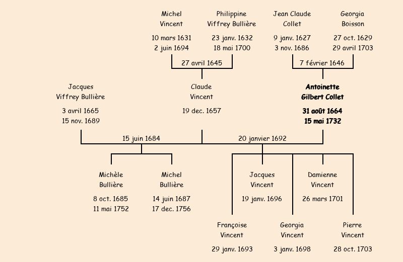 Antoinette Gilbert Collet apparait dans le recensement de la population de 1716. |