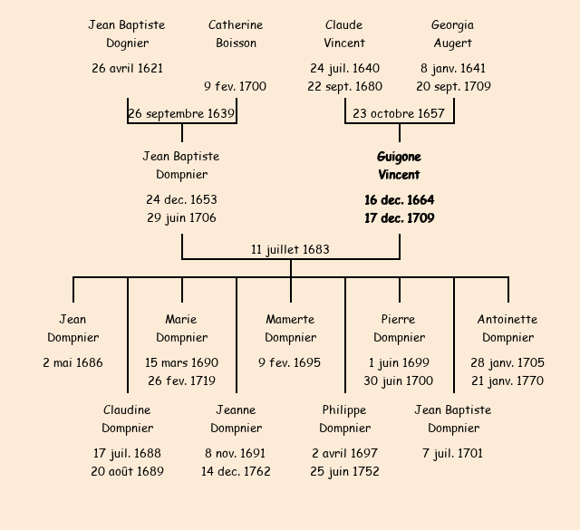Mariée (18 ans) avec Jean Baptiste Dompnier (29 ans) le 11 juillet 1683 à Fontcouverte ![]() |