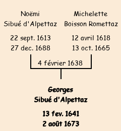 Père : Noémi Sibué d'Alpettaz | Parrain : Georges Sibué d'Alpettaz (fils de Jacques) |
