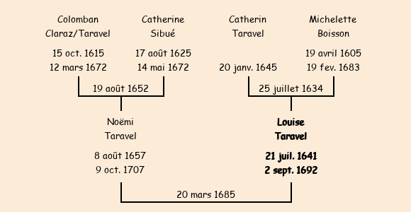 Mariée (43 ans) avec Noëmi Taravel (27 ans) le 20 mars 1685 à Fontcouverte ![]() |