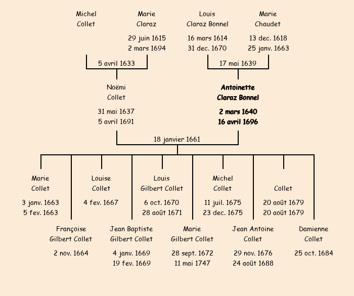 Père : Louis Claraz Bonnel | Parrain : Jacques Claraz Bonnel (fils de Gaspard décédé) |