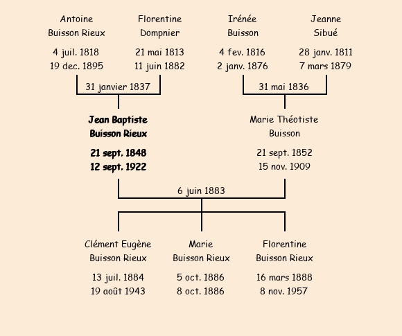 Jean Baptiste Buisson Rieux apparait dans le dénombrement de la population de 1881. |