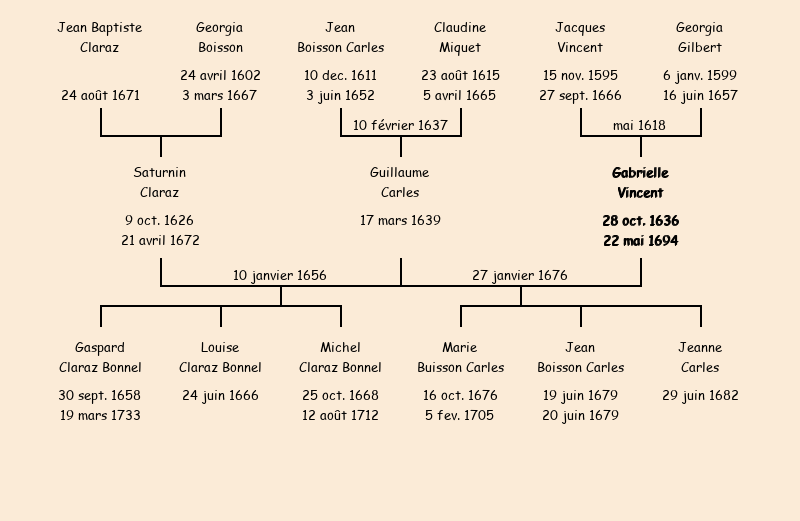 Mariée (39 ans) avec Guillaume Carles (36 ans) le 27 janvier 1676 à Fontcouverte ![]() |