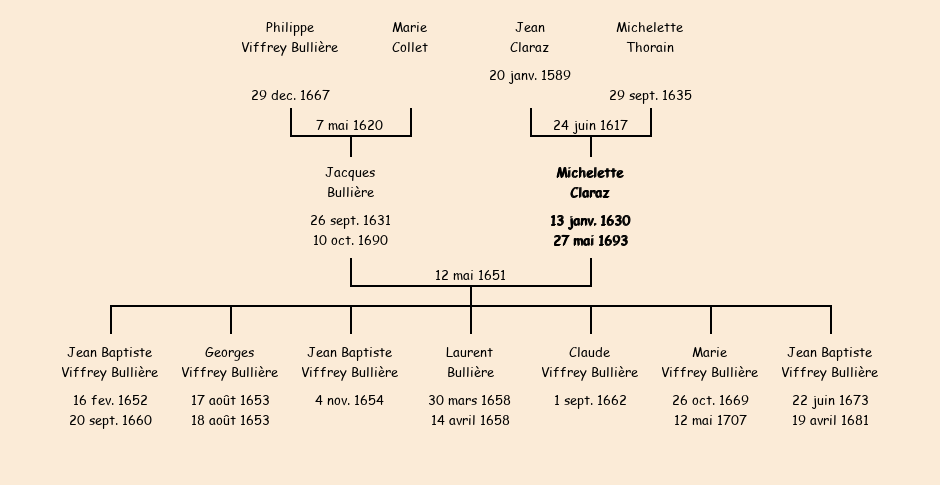 Mariée (21 ans) avec Jacques Bullière (19 ans) le 12 mai 1651 à Fontcouverte ![]() |