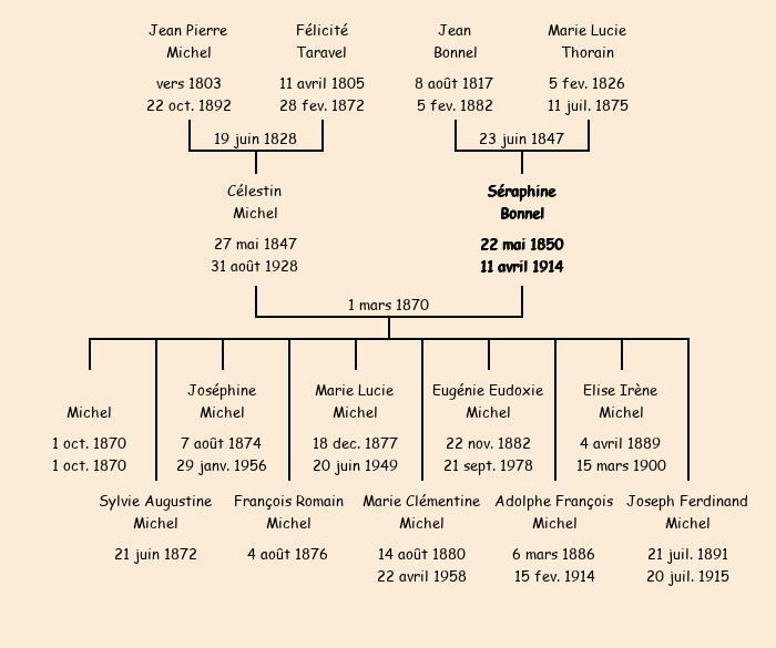 Séraphine Bonnel apparait dans le dénombrement de la population de 1881. |