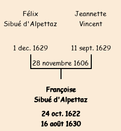 Mère : Jeannette | Marraine : Françoise Sibué d'Alpettaz (fille de Pierre) |