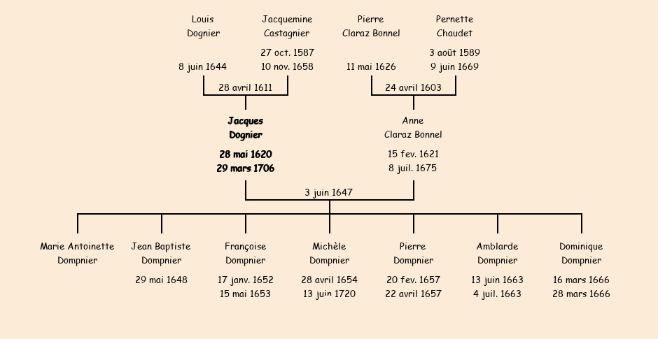 Marié (27 ans) avec Anne Claraz Bonnel (26 ans) le 3 juin 1647 à Fontcouverte ![]() |
