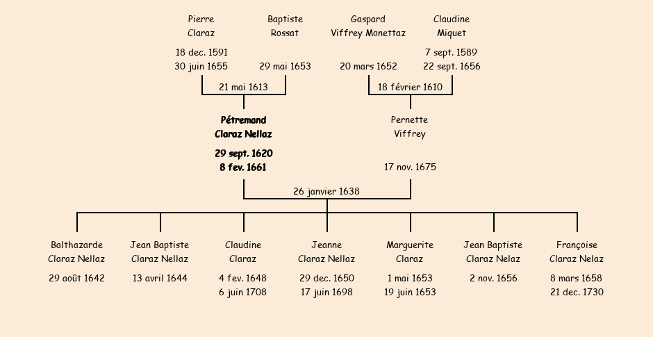 Père : Pierre Claraz Nellaz | Parrain : Pétremand Claraz |