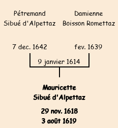 Mère : Damienne | Marraine : Mauricette Sibué d'Alpettaz Chanonaz (fille de Pierre) |