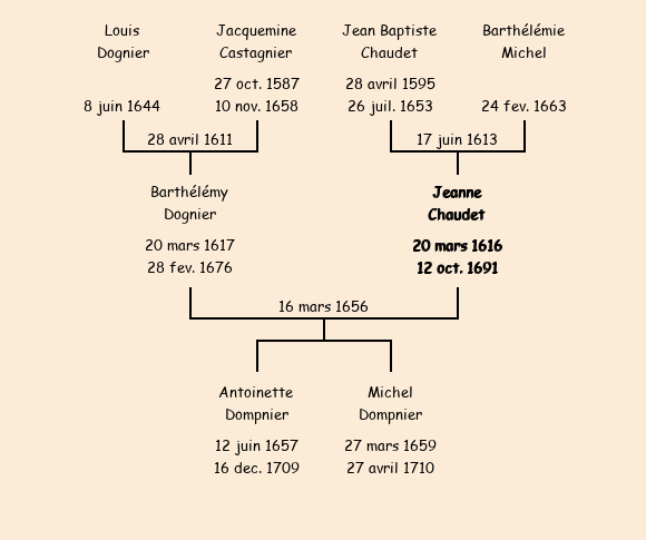 Epouse : Jeanne Chaudet, fille de Jean Baptiste |