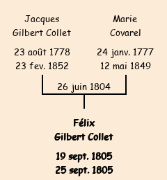 Père : Jacques Gilbert Collet, fils de Louis | Parrain : Félix Gilbert Collet (fils du dit Louis) |