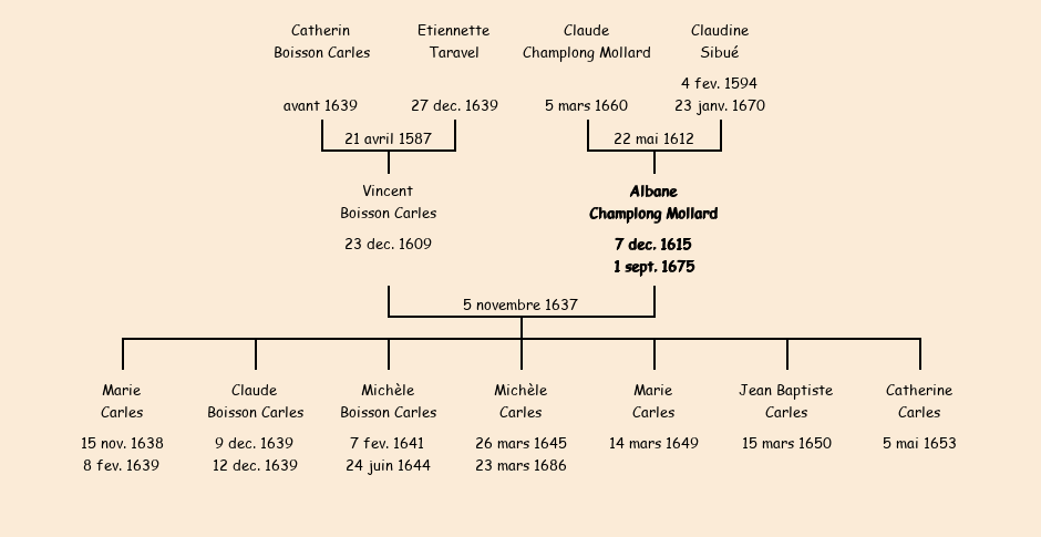 Mariée (21 ans) avec Vincent Boisson Carles (27 ans) le 5 novembre 1637 à Fontcouverte ![]() |