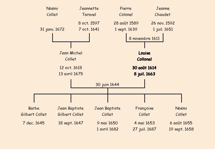Mère : Jeanne | Marraine : Louise Collonel (fille de Claude) |