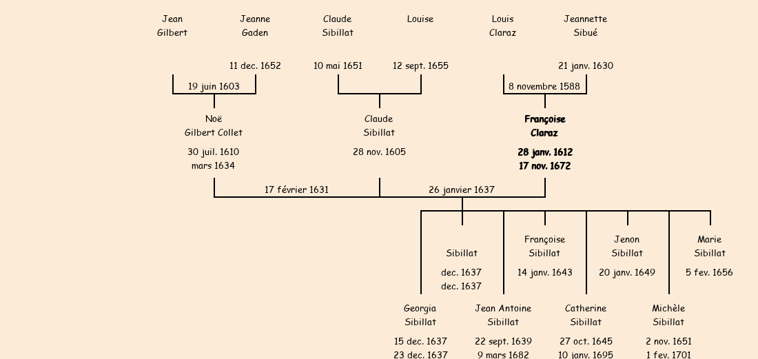Mariée (24 ans) avec Claude Sibillat (31 ans) le 26 janvier 1637 à Fontcouverte ![]() |