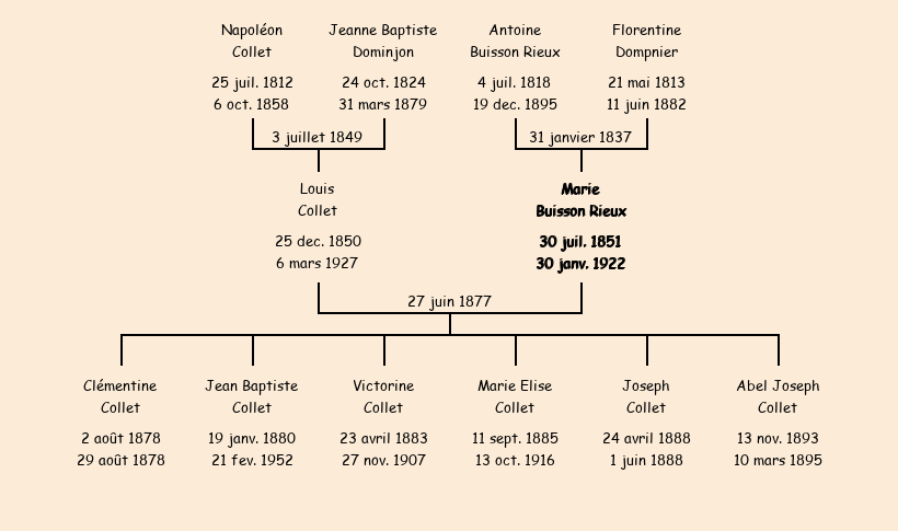 Epoux : Louis Collet (27 ans, né le 26 décembre1850, cultivateur à La Rochette, a signé), fils de Napoléon (décédé le 8 octobre1858) et de Jeanne Baptiste Dominjon (n'a pas su signer) |