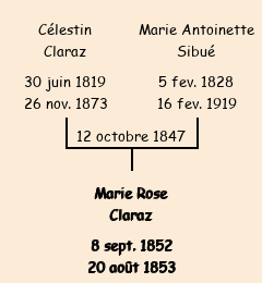 Mère : Marie Antoinette Sibué (ménagère) | Marraine : Rose Claraz (laboureur) |