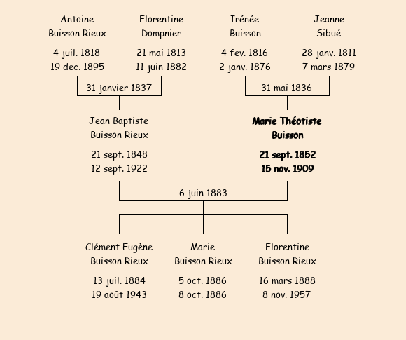 Marie Théotiste Buisson apparait dans le dénombrement de la population de 1881. |