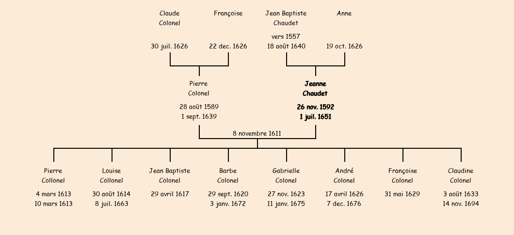 Epouse : Jeanne Chaudet (fille naturelle), fille de Jean Baptiste (honorable) |