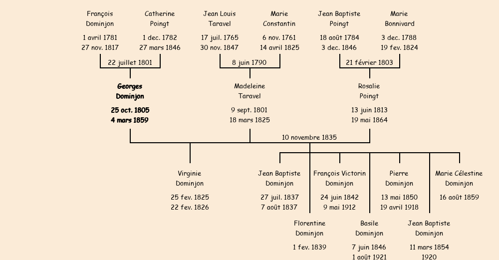Epoux : Georges Dominjon, fils de feu François et de Catherine Poingt |