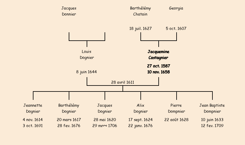 Epouse : Jacquemine Castanier, fille de Barthélémy |