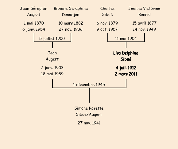 Epouse : Lisa Delphine Sibué (33 ans, née à Fontcouverte le 4 juillet1912, de La Bise), fille de Charles et de Jeanne Victorine Bonnel |