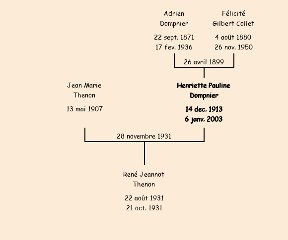 Epouse : Henriette Pauline Dompnier (17 ans, née à Fontcouverte le 14 décembre1913, du Chef Lieu), fille de Adrien et de Félicité Gilbert Collet |