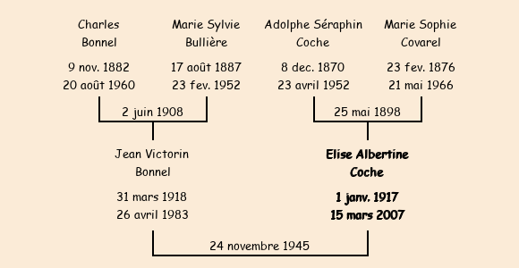 Epouse : Elise Albertine Coche (28 ans, née à Fontcouverte le 1er janvier 1917, du Suel), fille de Adolphe et de Marie Sophie Covarel |