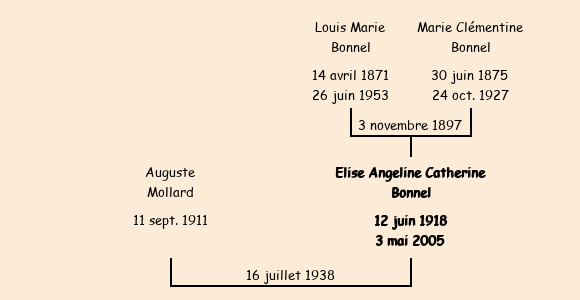 Mariée (20 ans) avec Auguste Mollard (26 ans) le 16 juillet 1938 à Fontcouverte |