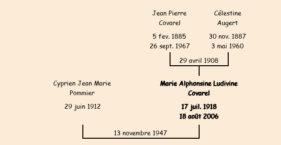 Epouse : Marie Alphonsine Ludivine Covarel (29 ans, née à Fontcouverte le 17 juillet1918, de Vers le Rieux), fille de Jean Pierre et de Célestine Augert |