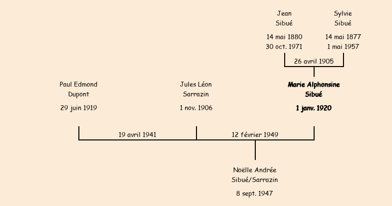 Epouse : Marie Alphonsine Sibué (29 ans, née à Fontcouverte le 1er janvier 1920, de La Bise, veuve de Paul Edmond Dupont), fille de Jean et de Sylvie Sibué |