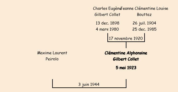 Mariée (21 ans) avec Maxime Laurent Peirolo le 3 juin 1944 à Saint-Jean-de-Maurienne |