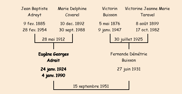 Epouse : Fernande Démétrie Buisson (20 ans, née à Fontcouverte le 27 juin1931, du Roset Dessus), fille de Victorin et de Jeanne Marie Taravel |