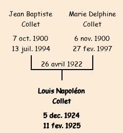 Père : Jean Baptiste Collet (24 ans, né le 7 octobre 1900 à Fontcouverte) | Parrain : - |