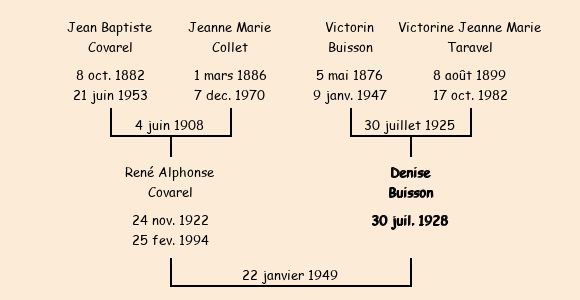 Epoux : René Alphonse Covarel (26 ans, né à Fontcouverte le 24 novembre1922, domicilié au Chef Lieu), fils de Jean Baptiste et de Jeanne Marie Collet |