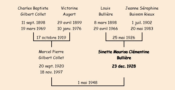 Epoux : Marcel Pierre Gilbert Collet (27 ans, né à Fontcouverte le 20 septembre1920, domicilié à La Rochette), fils de Charles Baptiste et de Victorine Augert |
