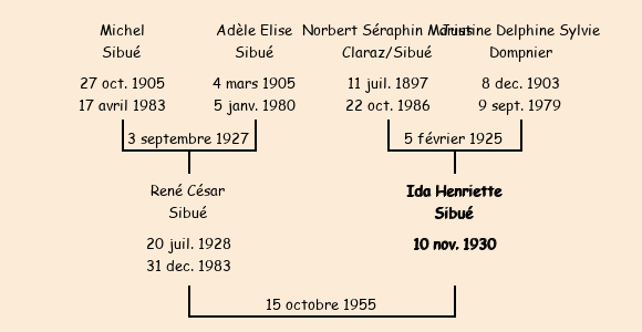 Père : Norbert Séraphin Marius Sibué (33 ans, né le 11 juillet 1897 à Fontcouverte) | Parrain : - |