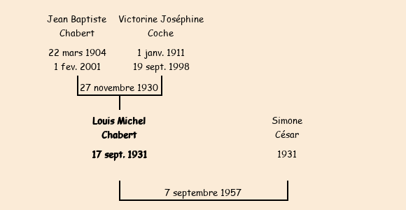 Marié (25 ans) avec Simone César (26 ans) le 7 septembre 1957 à Saint-Jean-de-Maurienne |