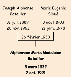 Alphonsine Marie Madeleine Batailler apparait dans le dénombrement de la population de 1936. |