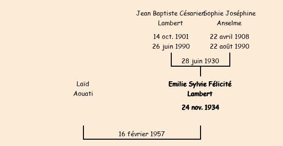 Mariée (22 ans) avec Laïd Aouati le 16 février 1957 à Décines-Charpieu |