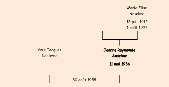 Mariée (22 ans) avec Yves Jacques Debiesse le 30 août 1958 à Grenoble |