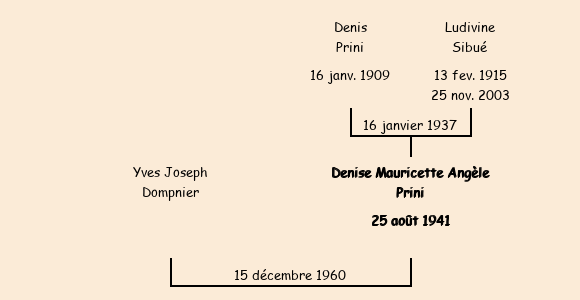 Mariée (19 ans) avec Yves Joseph Dompnier le 15 décembre 1960 à Saint-Jean-de-Maurienne |