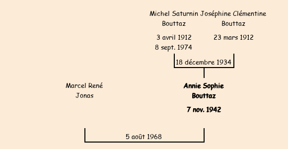 | Père : Michel Saturnin Bouttaz (né le 3 avril 1912 à Saint Michel de Maurienne, négociant) | Parrain : - |