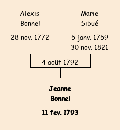 | Mère : Marie Sibué | Marraine : Jeanne Marie Bonnel |