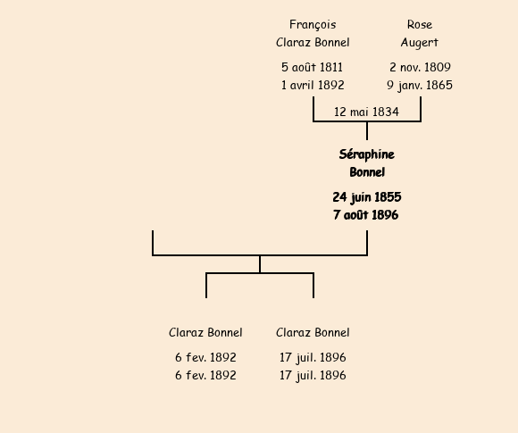 Père : François Claraz Bonnel (décédé cultivateur à La Bise) |