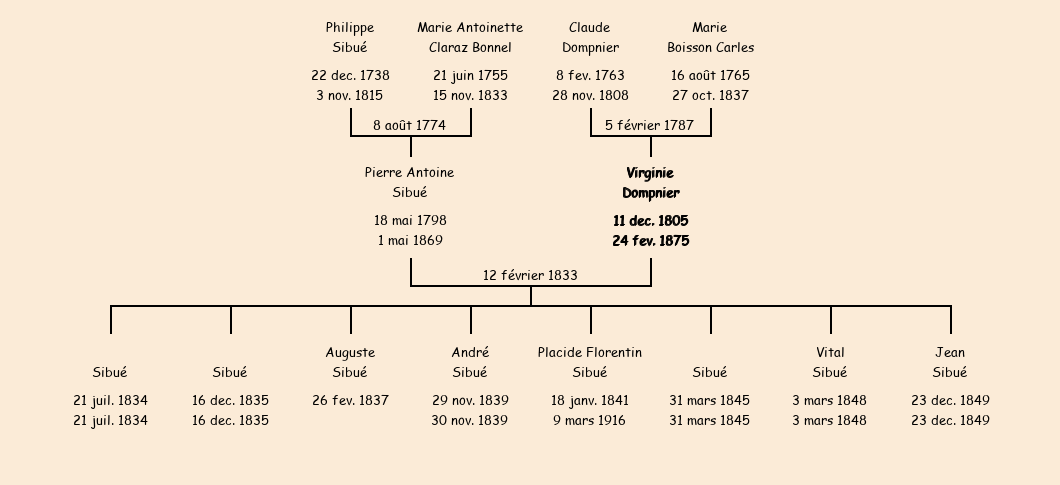 | Epoux : Pierre Antoine Sibué, fils de feu Philippe et de Marie Antoinette Bonnel |