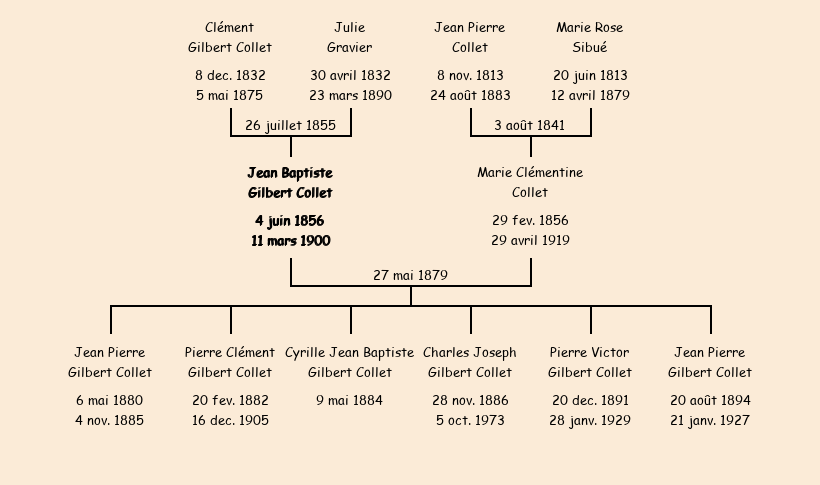 Jean Baptiste Gilbert Collet apparait dans le dénombrement de la population de 1881. |