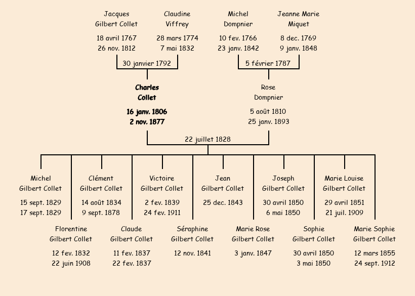 Epoux : Charles Gilbert Collet, fils de feu Jacques et de Claudine Viffrey |